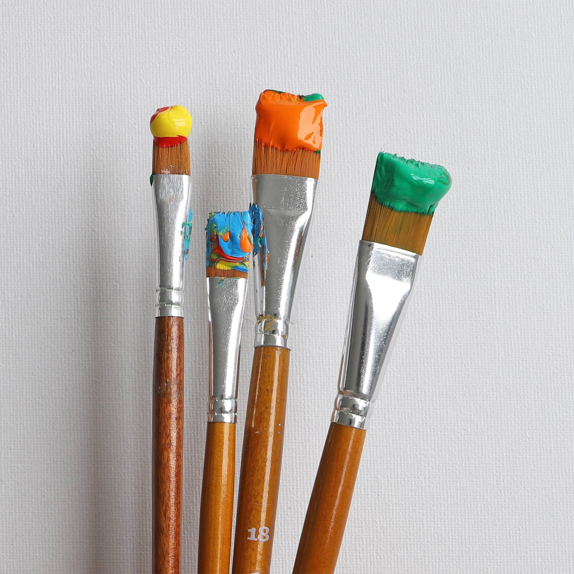 Deze set van 5 hoogwaardige penselen met synthetisch haar is perfect voor acryl- en posterverftechnieken. De penselen hebben zowel ronde als platte punten en komen in verschillende maten, waardoor ze ideaal zijn voor diverse schilderprojecten.